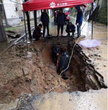 為了盡快完成管道修復(fù)工作,及時(shí)恢復(fù)供水,搶修隊(duì)在現(xiàn)場(chǎng)制定搶修方案,組織搶修人員關(guān)閉閥門、開挖路面,并根據(jù)經(jīng)驗(yàn)迅速調(diào)集搶修工具和物品,做好材料的準(zhǔn)備工作。雖然天空下著大雨,給搶修工作帶來(lái)了不便,但搶修人員不畏辛苦,加班加點(diǎn),冒著大雨依然緊張有序地開展著搶修工作,從白天奮戰(zhàn)到天黑,經(jīng)過(guò)8個(gè)小時(shí)的奮力搶修,供水管道故障全面排除,于晚上19點(diǎn)20分恢復(fù)了正常供水。